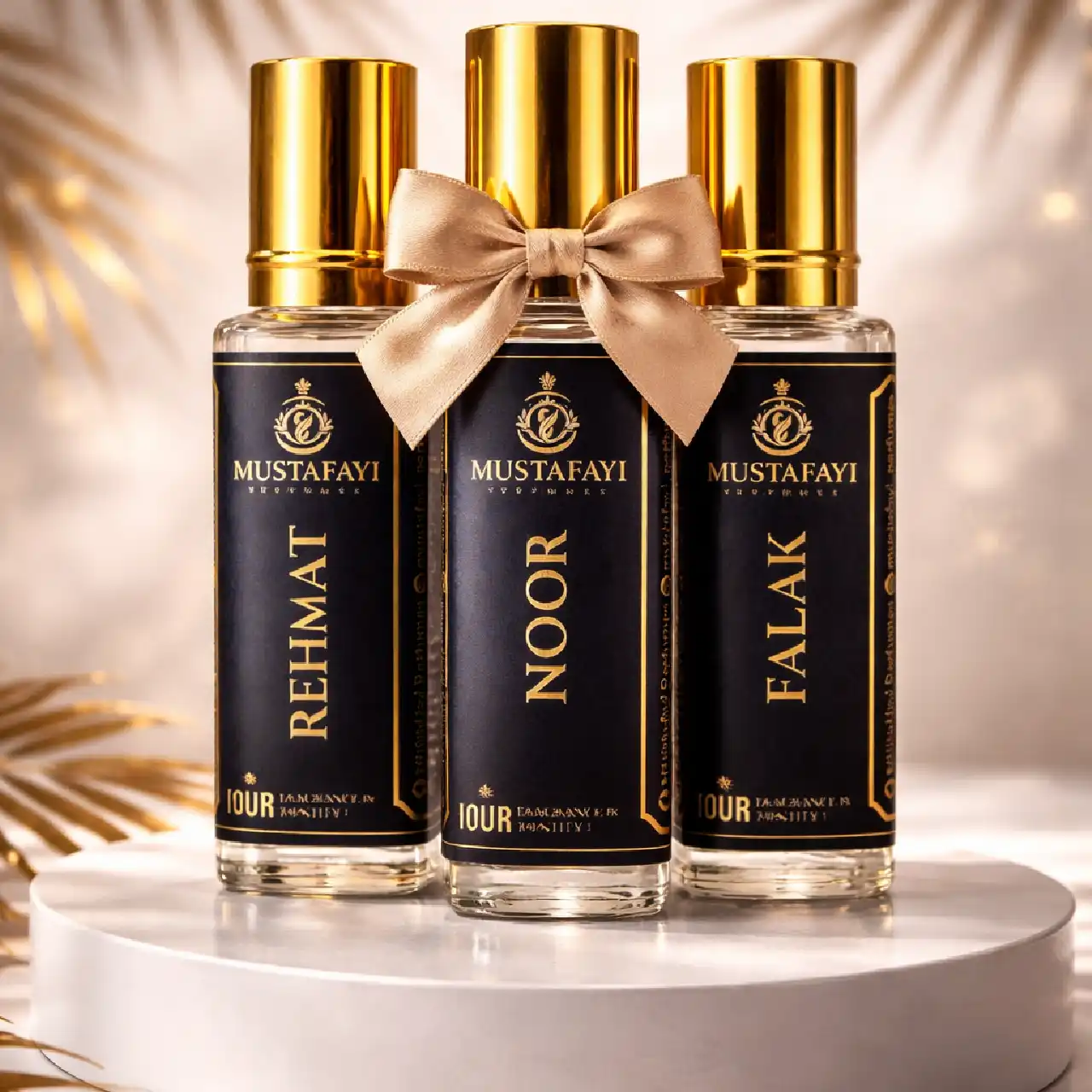 Celebrate the spirit of Ramzan and Eid with our Ramzan Eid Special Pack, a thoughtfully designed attar collection that brings together elegance, tradition, and beautiful fragrances. This exclusive set includes three distinctive attars — Noor, Rehmat, and Falak — each crafted to deliver a unique scent experience.